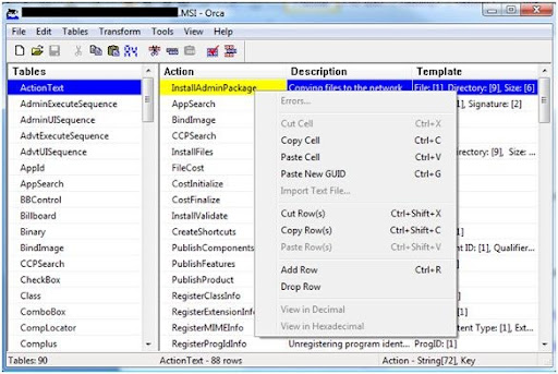 | b. | Install the Orca editor by double-clicking the Orca.msi file in the \Microsoft SDK\bin folder. |
