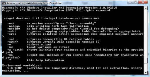 Dark is used to reverse engineer an MSI into a WiX source file